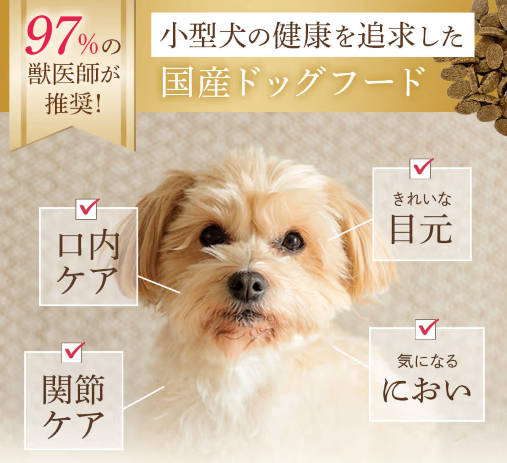食いつきの良さや消化性の高さなども、体調管理の中で涙やけへの対策として役立つポイントになりますので、気になる方はミシュワン小型犬用プレミアムフードを一度試してみるのも良い方法です。